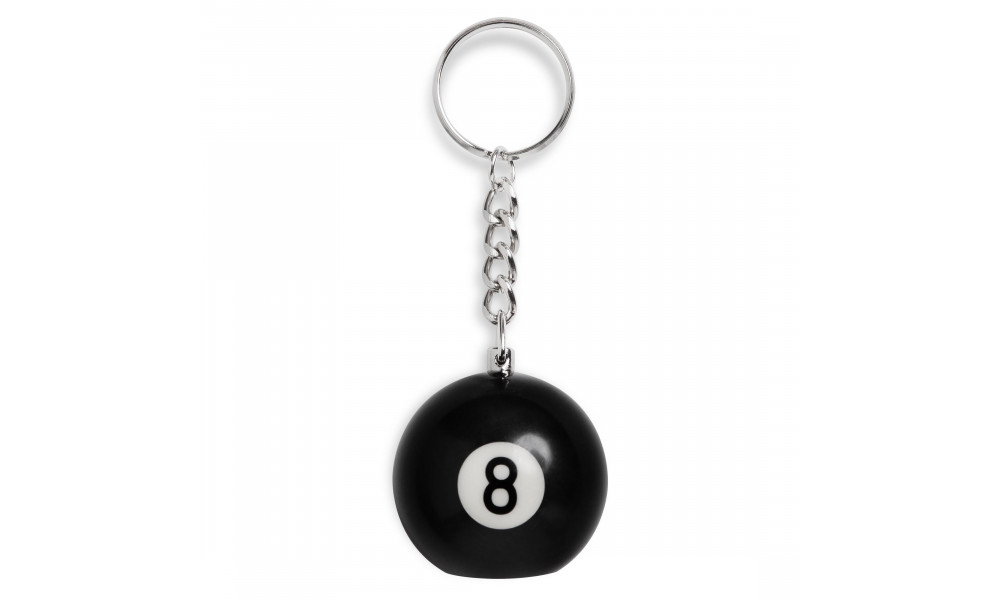 Это не простой брелок для ключей. Миниатюрный бильярдный шар №8 черного цвета, изготовленный из полиэстера, - это еще и инструмент для обработки наклейки для придания ей шероховатой поверхности, на которой лучше держится мел. Диаметр шара-брелока — 35 мм, в его основании имеется сфера с абразивным покрытием, с помощью которого можно разрыхлить наклейку. Такая обработка способствует лучшему соприкосновению наклейки с шаром в момент удара, значительно снижая вероятность кикса.